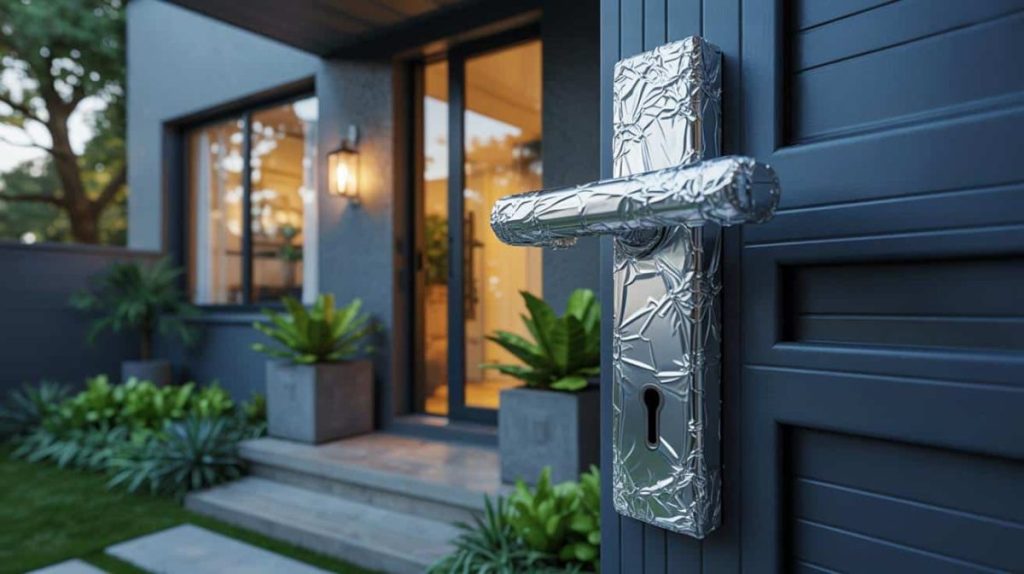 Das Anbringen von Aluminiumfolie auf Türgriffen kann als eine Art Tarnung dienen, die Einbrecher wirksam abschreckt.